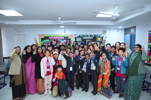 On 27 January 2026, the air was thick with the rhythmic pulse of dhol beats as we welcomed our sister school, Dong Xing Elementary School, Taiwan, with the vibrant warmth of Indian tradition. Adorned in Jaipuri stoles and Rudraksh malas, our guests were embraced with the sacred Tilak and Moli, marking the start of a profound cultural immersion.
