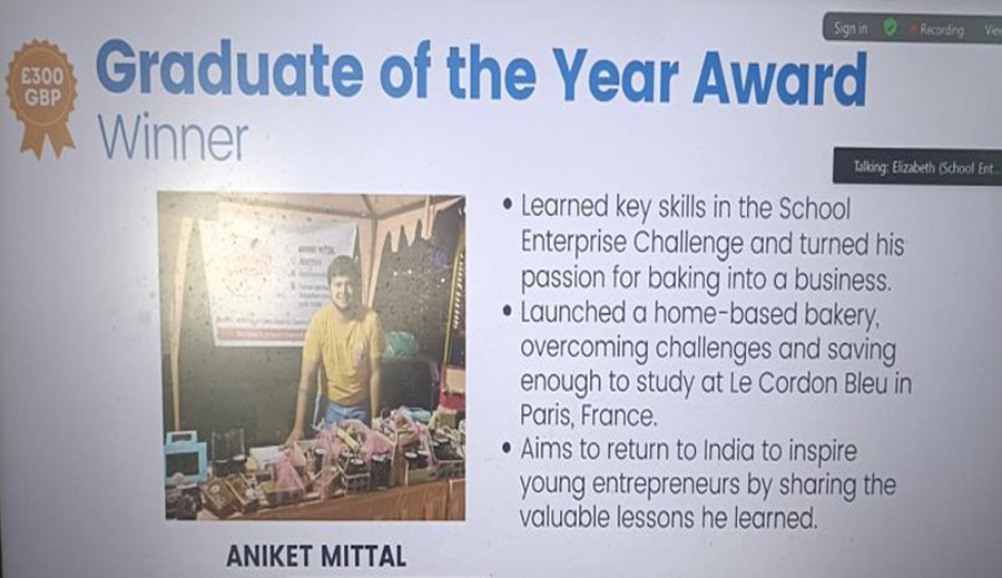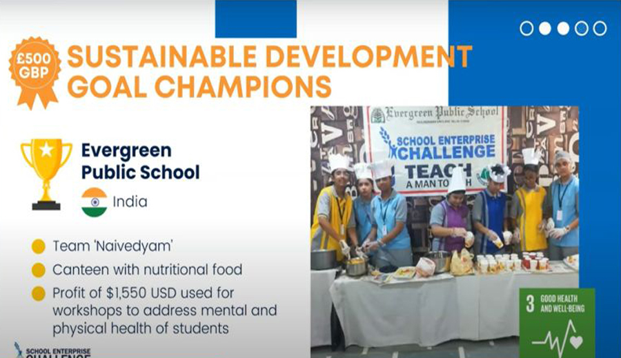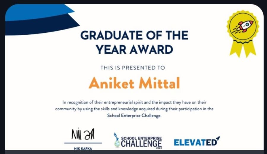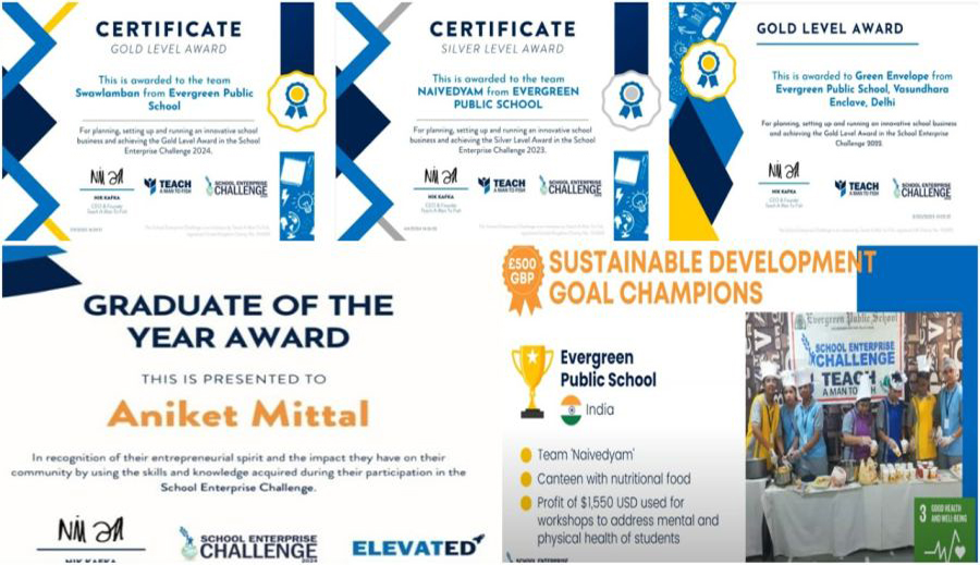 - School Enterprise Challenge 'Teach a Man to Fish': Through the School Enterprise Challenge, our students have honed their entrepreneurial skills by developing and running a business that keeps Planet, People, and Profit in mind while addressing various SDGs. We are proud recipients of Bronze, Silver, and Gold Awards over the years. Furthermore, we received a cash award of £500 for the Sustainable Development Goal Champions. We were especially proud when our student, Aniket Mittal, was awarded the Graduate of the Year last year, receiving a cash award and certificate of £300.