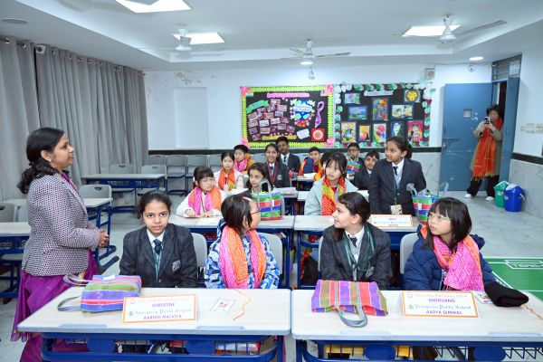 On 27 January 2026, the air was thick with the rhythmic pulse of dhol beats as we welcomed our sister school, Dong Xing Elementary School, Taiwan, with the vibrant warmth of Indian tradition. Adorned in Jaipuri stoles and Rudraksh malas, our guests were embraced with the sacred Tilak and Moli, marking the start of a profound cultural immersion.